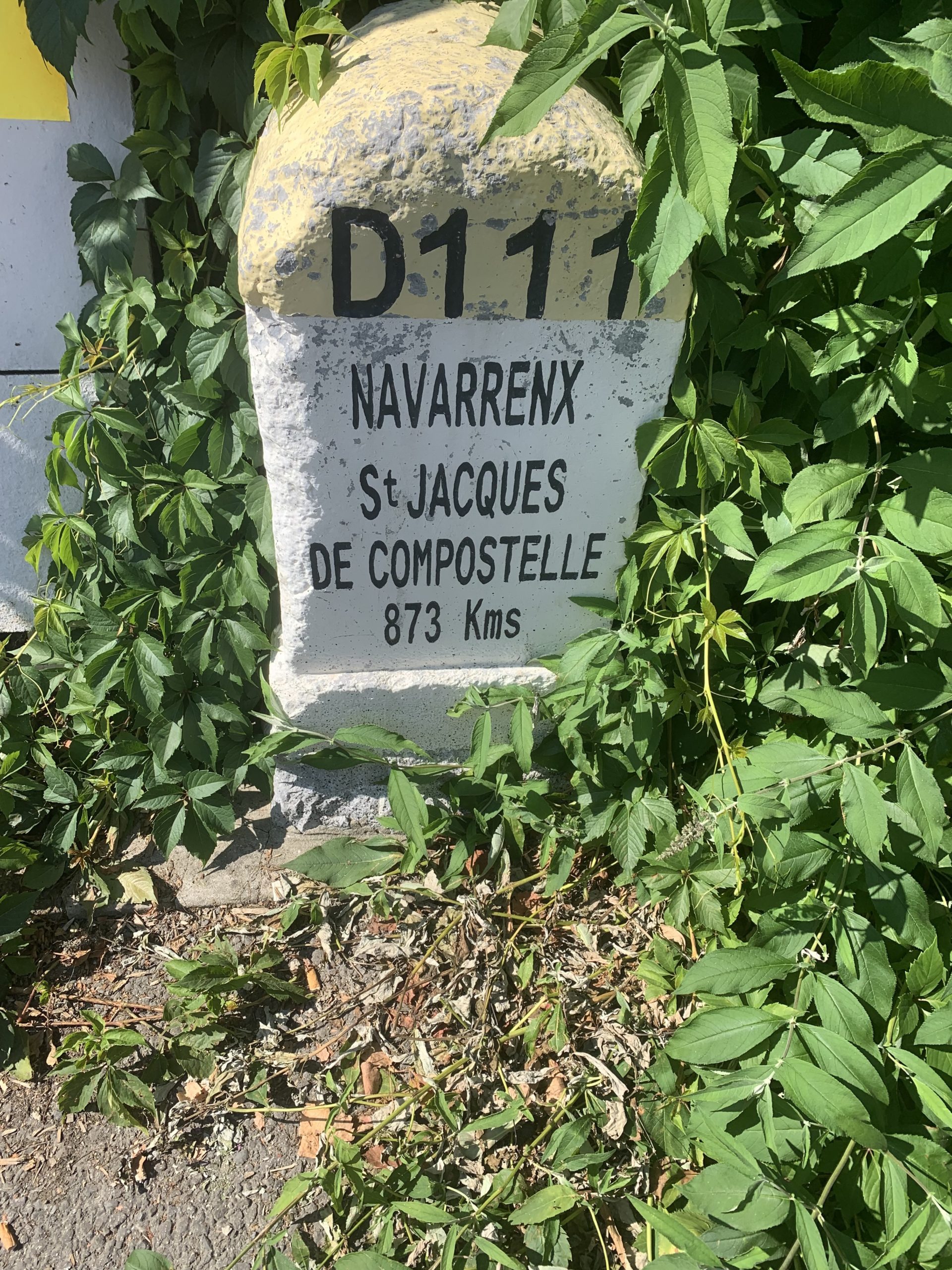 Aujourd’hui une grande étape nous attend. Nous partons donc de Maslacq de bonne heure. Nous trouvons assez facilement le début du chemin. Un petit sentier bien sympathique qui serpente parmi les champs de maïs. Au détour d’un virage , nous avons une vue sur l’usine de Lacq. Après deux bonnes heures de marche nous arrivons à la très belle abbaye de Sauvelade. Un petit film qui retrace l’histoire de l’abbaye est projetée dans la nef. Cela nous permet de nous reposer un peu avant d’attaquer la suite vers Navarrenx. Nous marchons sur plusieurs kilomètres sans rencontrer âme qui vive.il y a beaucoup de montées très raides et de descentes aussi raides .